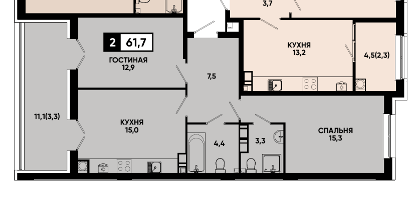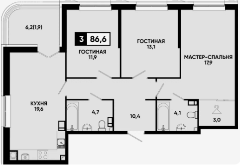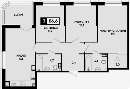 Площадь от 86.1 м2