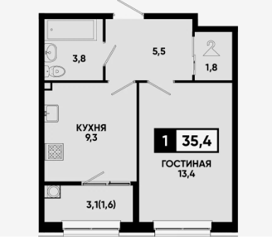 1 комнатная