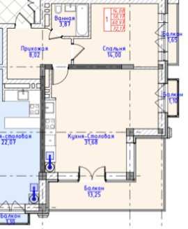 2027 1, 2 комнаты от 39.59 до 74.76 м2 от 6,7 до 11,9 млн. руб